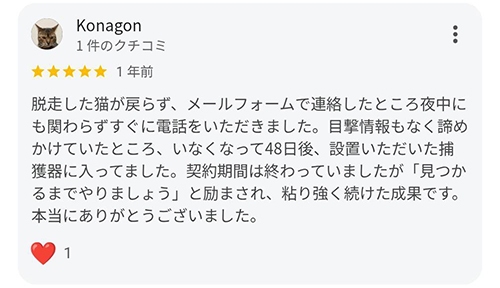 ペット捜索のご依頼をいただいたお客様から、たくさんのお喜びの声をいただきましたので一部ご紹介いたします。